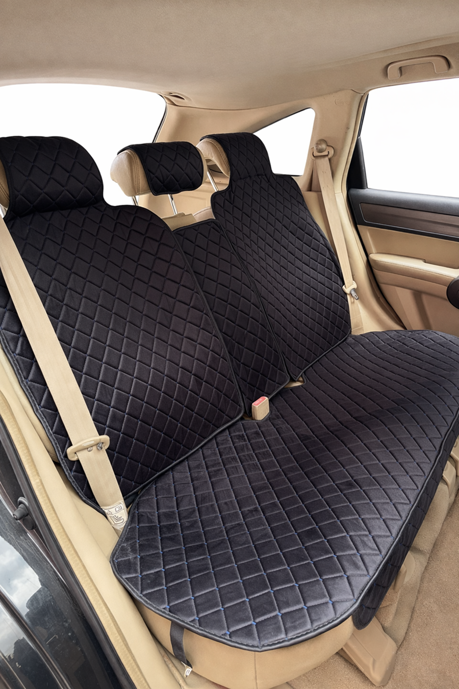 Со сквозной прошивкой и антислипом, комплект: Полный комплект, материал: Велюр, основной цвет: Черный, прострочка: Ромб, цвет прострочки: Синий.
